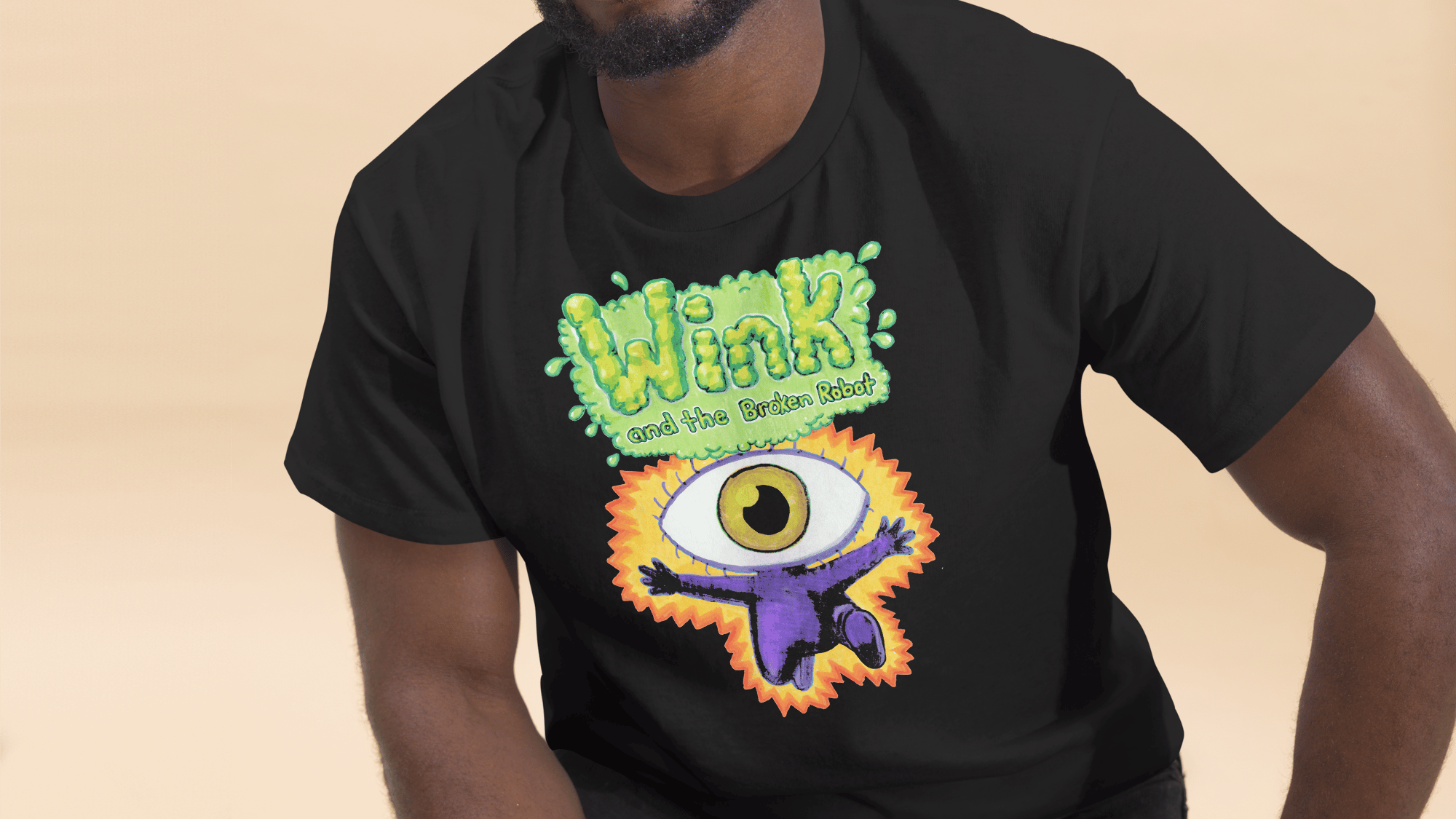 Wink & the Broken Robot T-Shirt made by Gildan. High quality print with a great fit and feel. Show of your love for the classic character or even get it framed or something!